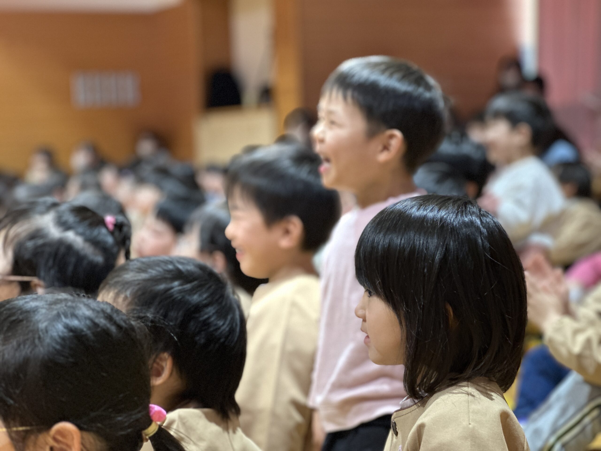 ノリノリの音楽に1年生から6年生まで一気に心を掴みます。